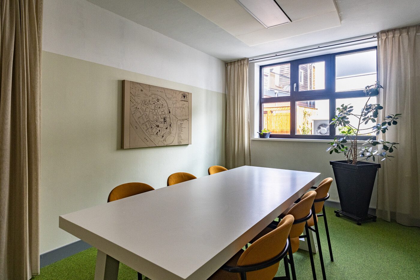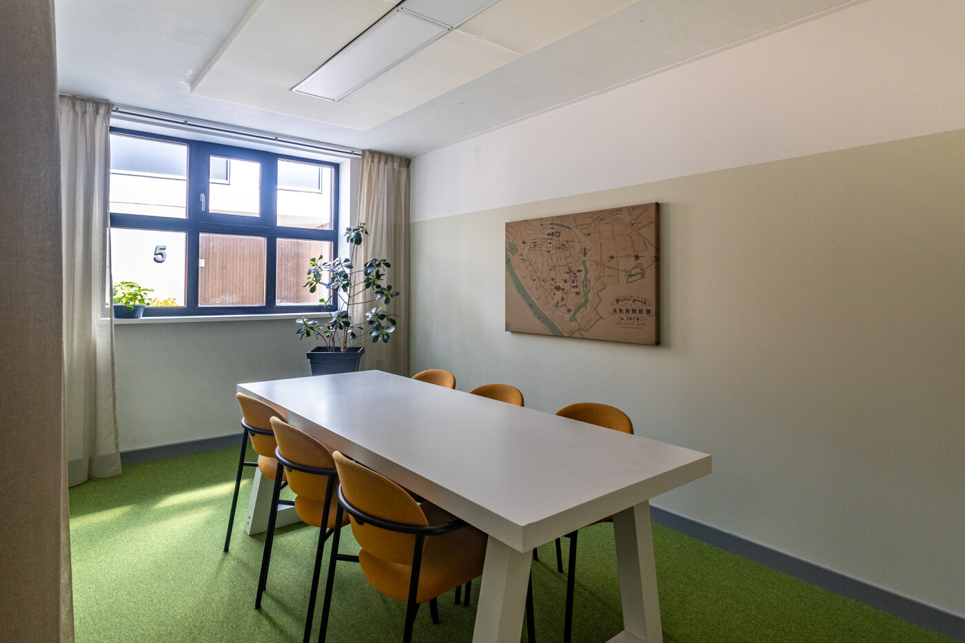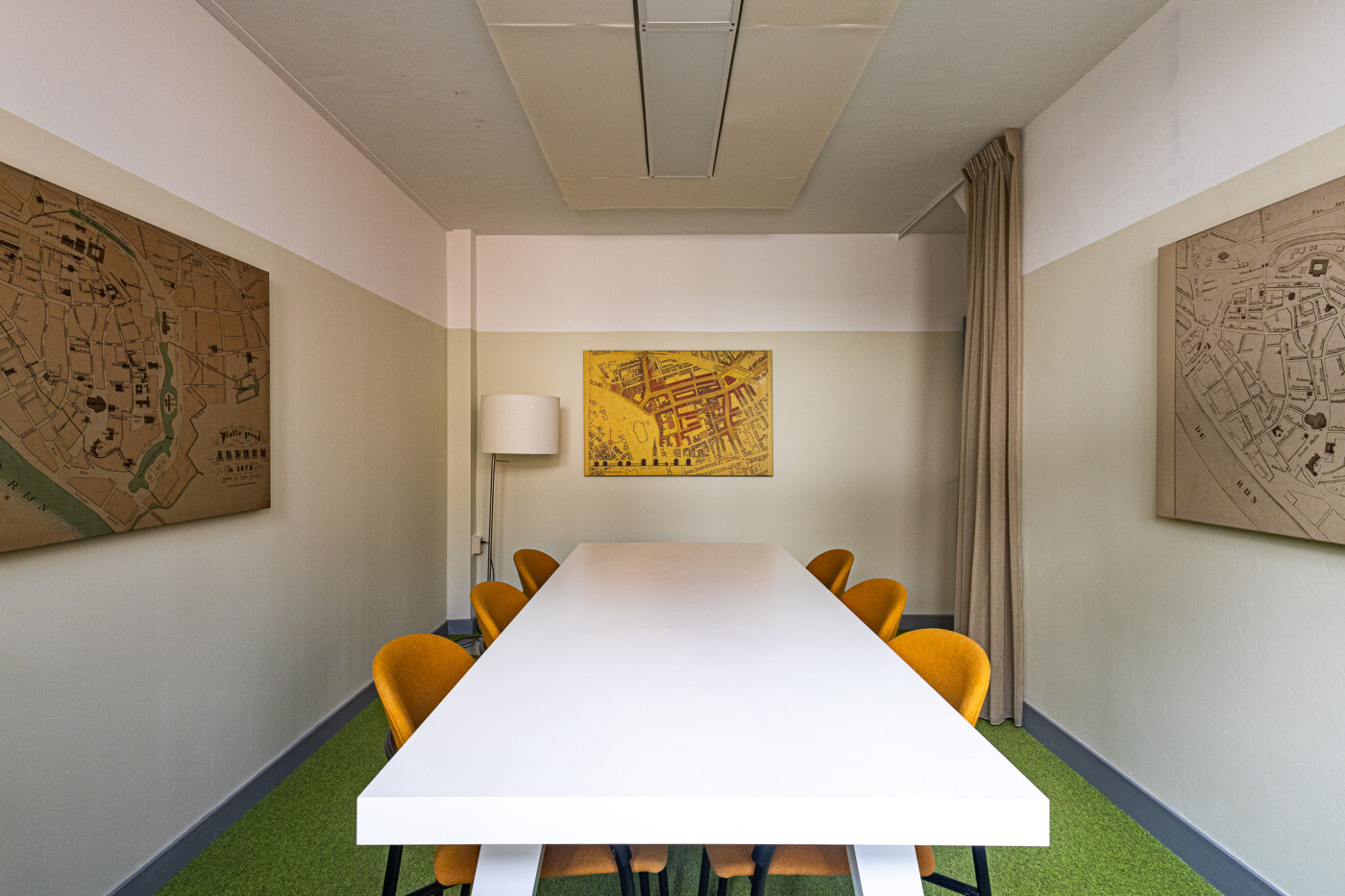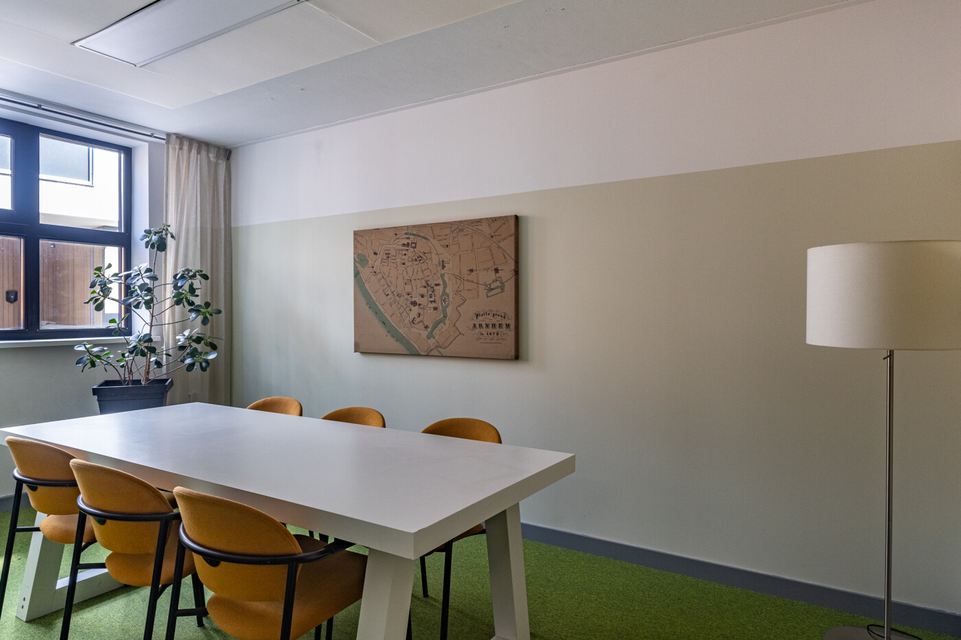 Spreekkamer De Steenzaal ligt op de begane grond en is ingericht met een tafel en 6 stoelen.