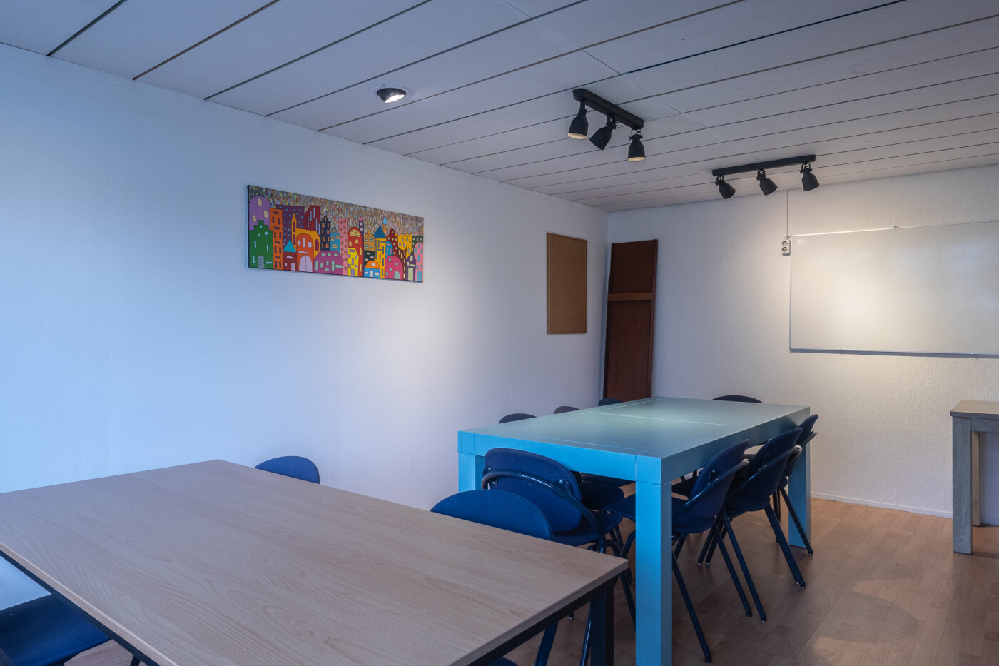 De Vergaderzaal is geschikt voor ca. 10 personen en is voorzien van vergadertafel, stoelen, wifi, flipover en whitebord. Een beamer is tegen meerprijs mogelijk.
