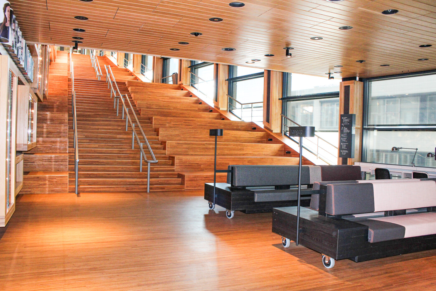 Plein op 3 is een ruim plein met imposante houten trappen naar de vierde en vijfde verdieping.