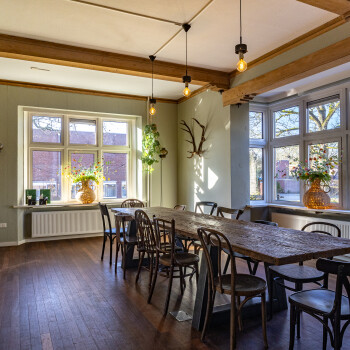 De sfeervolle vergaderruimte De Burlzaal is geschikt voor 12 tot max. 14 personen. De ruimte is ingericht met vergadertafel met stoelen, smart-TV met HDMI-aansluiting en Wifi. Een flipover kan op verzoek worden bijgeplaatst.