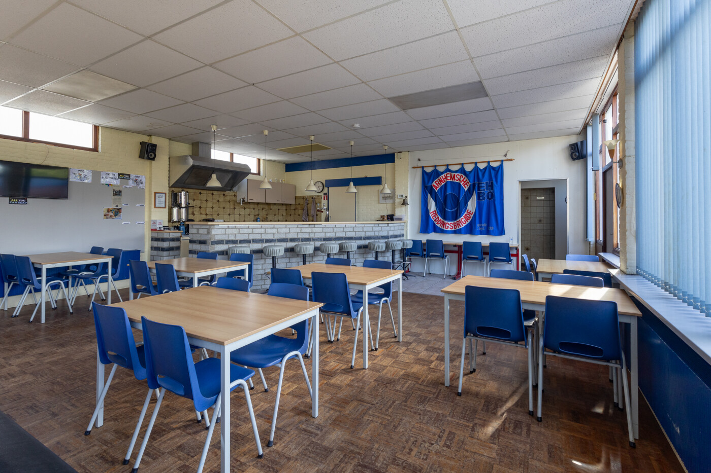 Het Clubhuis is voorzien van diverse tafels met stoelen, bank, bar, TV en geluidsinstallatie (geen wifi).