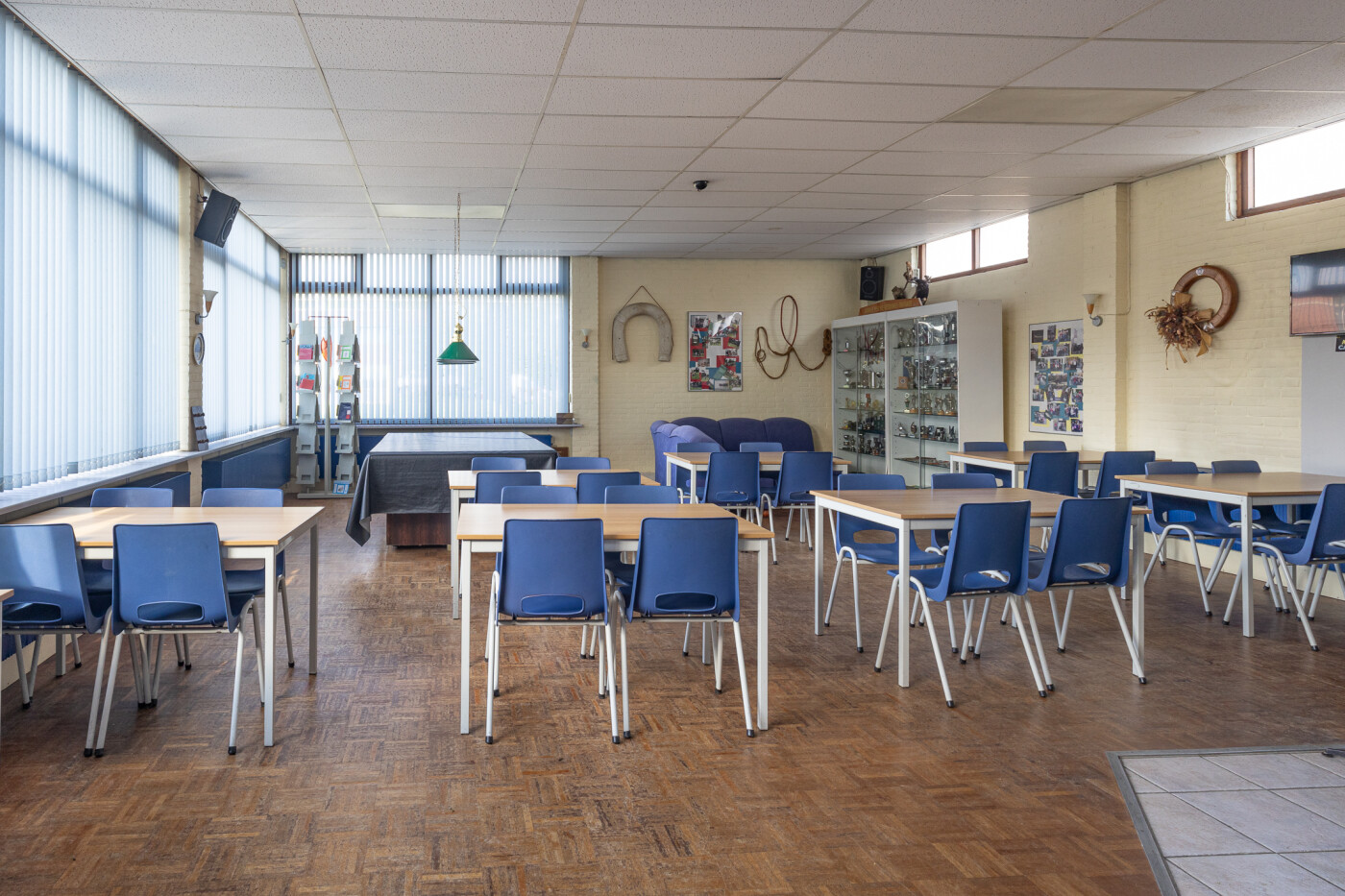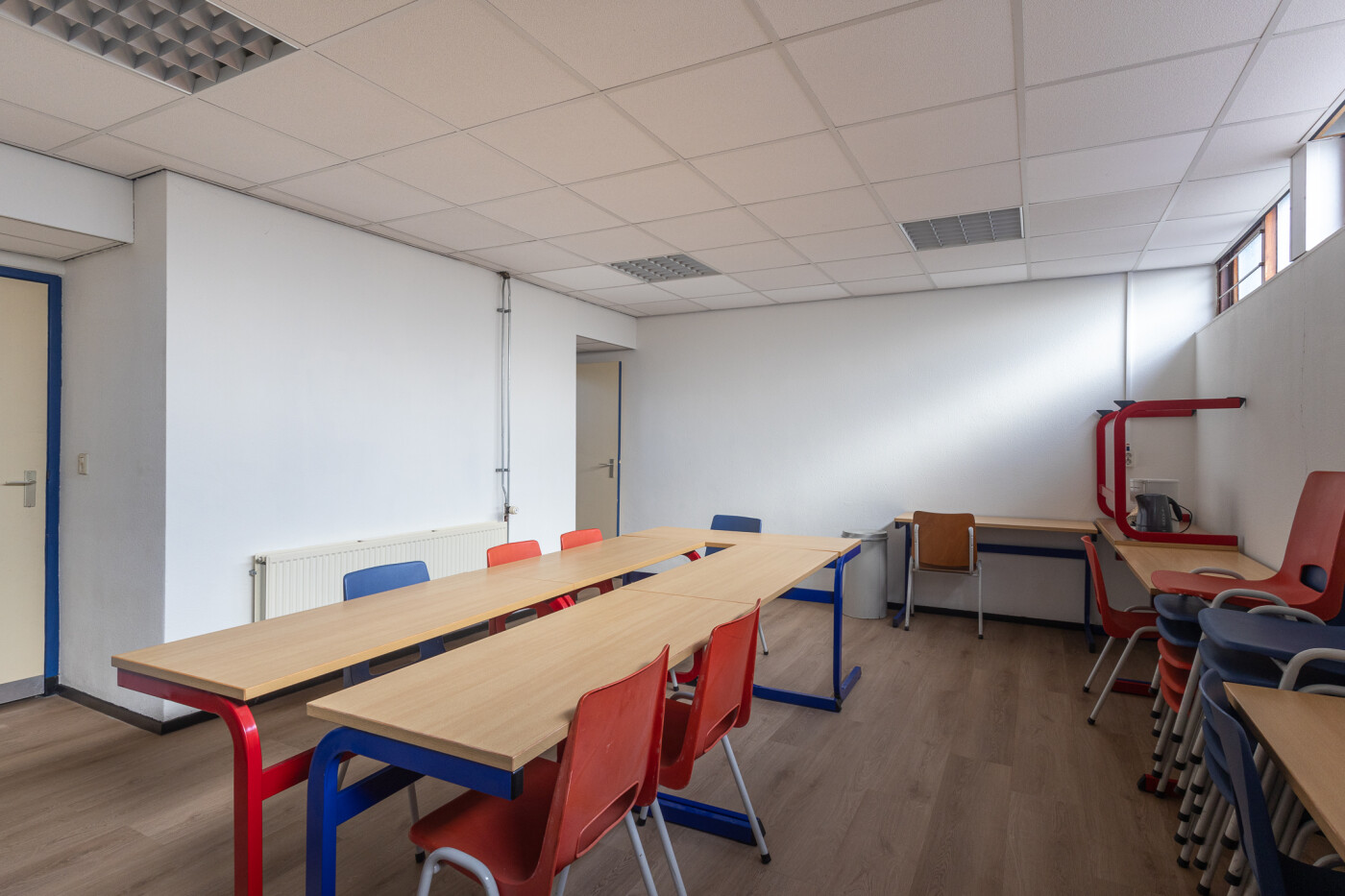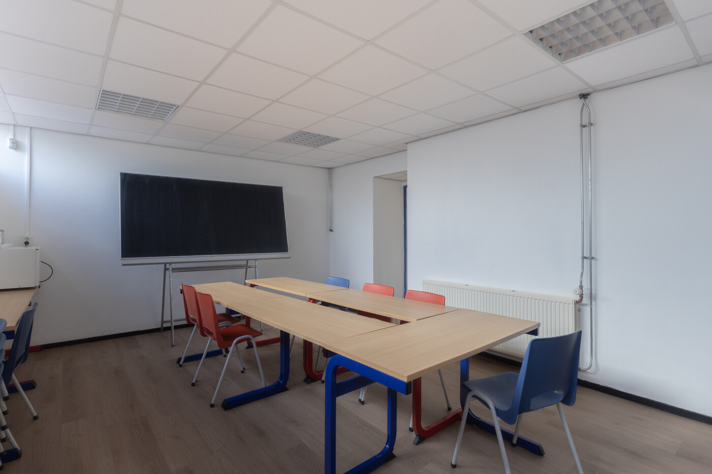 Ook is er nog een aparte ruimte die gebruikt mag worden, deze ruimte is ingericht als vergaderruimte met tafels, stoelen en schoolbord, deze ruimte is geschikt voor 8-10 personen.